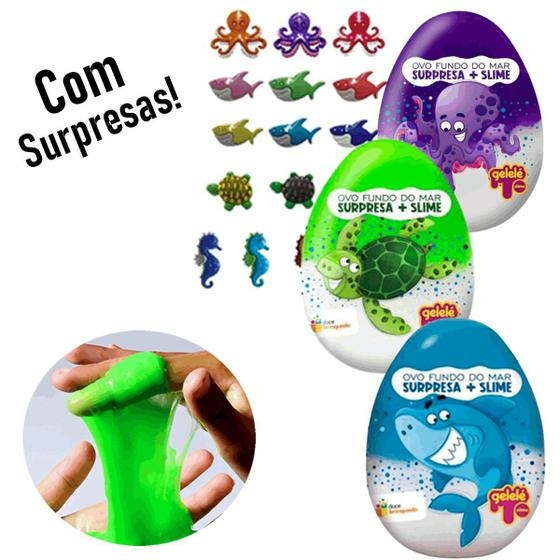 Ovo Surpresa Fundo do Mar Gelelé - Geleinha Slime Sortido é uma nova temática no mundo das slimes retratando um pouco o fundo do mar e suas criaturas. Vem com Surpresas Aleatórias e é possível coleciona-los!